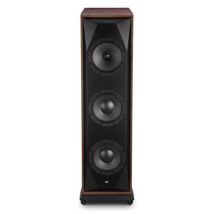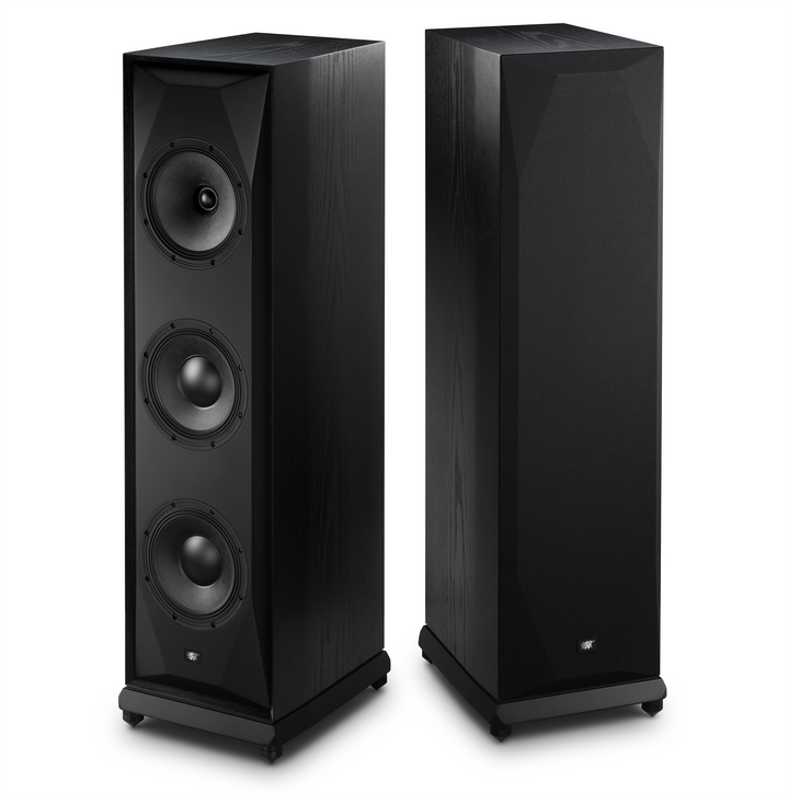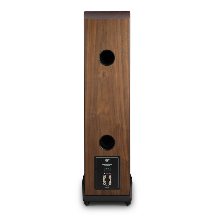 Embodying high-quality cabinet construction, the SourcePoint 888's architecture is as robust as it is aesthetically pleasing. Utilizing thick MDF panels and sophisticated internal bracing, each speaker stands as a testament to our commitment to acoustic excellence. The refined finish, whether in Satin Walnut or Black Ash real wood veneer, complements its acoustic integrity with visual elegance.